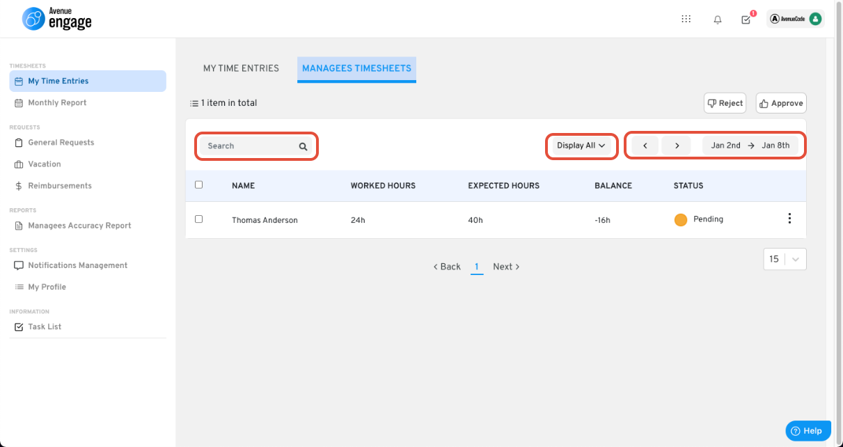 Step 1: Go to the "Managees Timesheets" tab