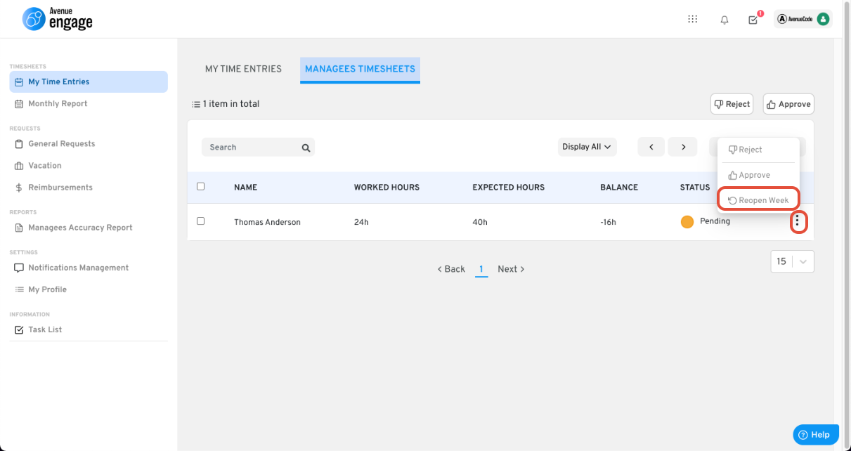 If by any reason one of your managees have to make a change on a submitted week, follow the steps below.