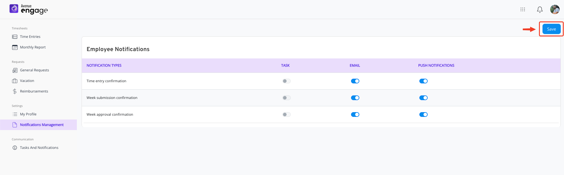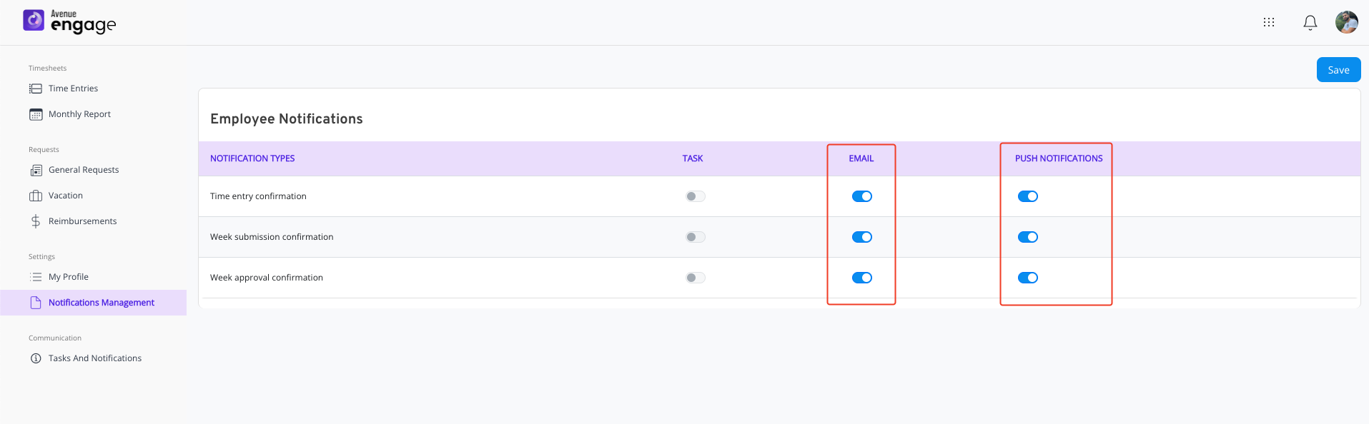 With Avenue Engage you are able to receive email and desktop notifications, bellow you will find instructions on how to manage these notifications.