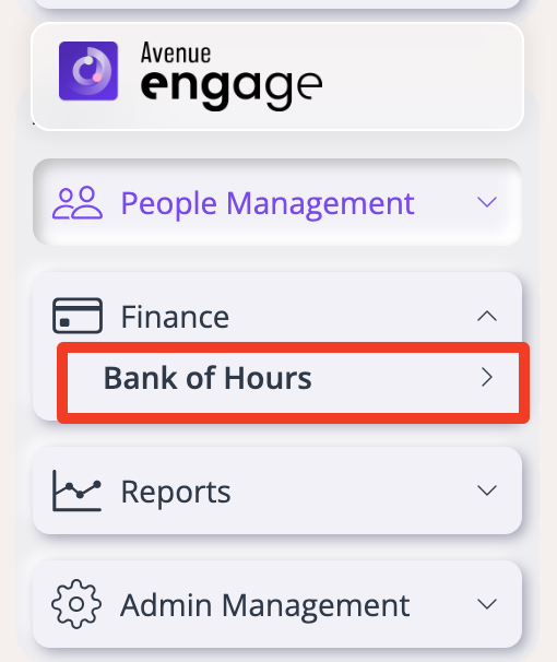Step 1: Access Finance > Bank of Hours