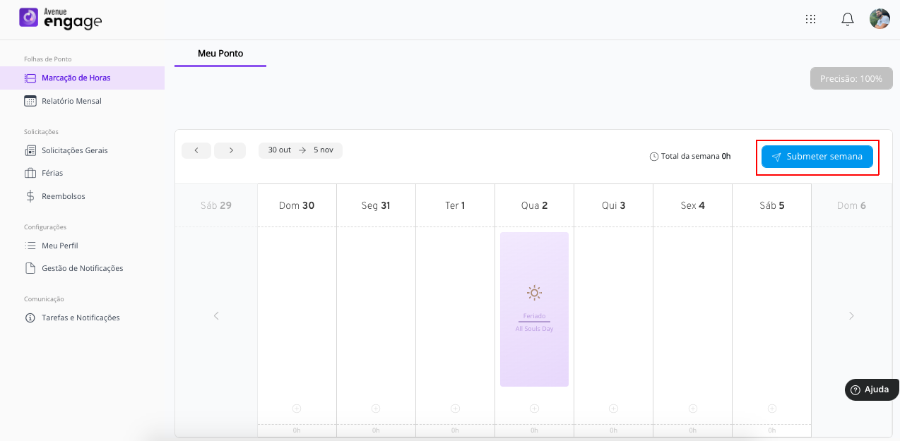 Por padrão todos os colaboradores precisam submeter as suas semanas de trabalho com os apontamentos de hora e ponto no final de cada semana, dessa forma o seu gerente poderá revisar os dados enviados semanalmente.