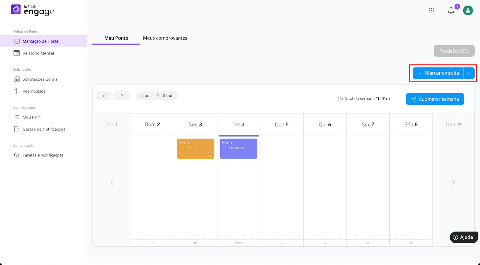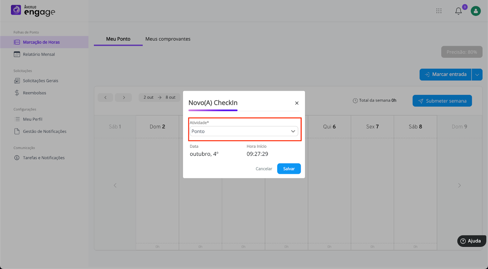Olá! Confira o passo a passo para registrar sua jornada de horas no Avenue Engage.