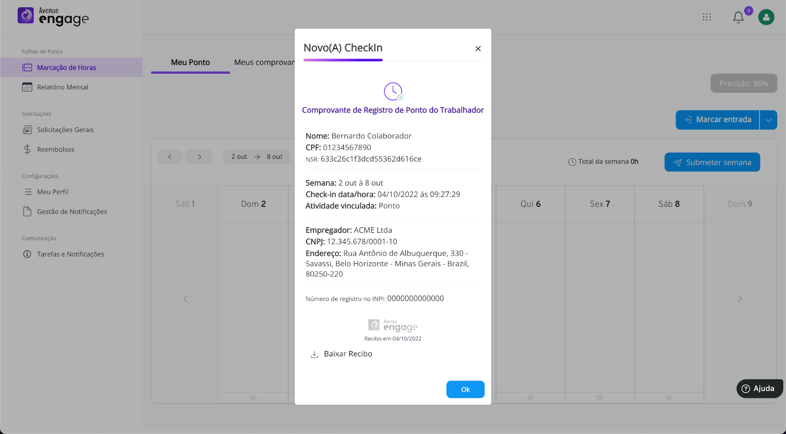 Confira o seu Comprovante de Registro de Ponto.