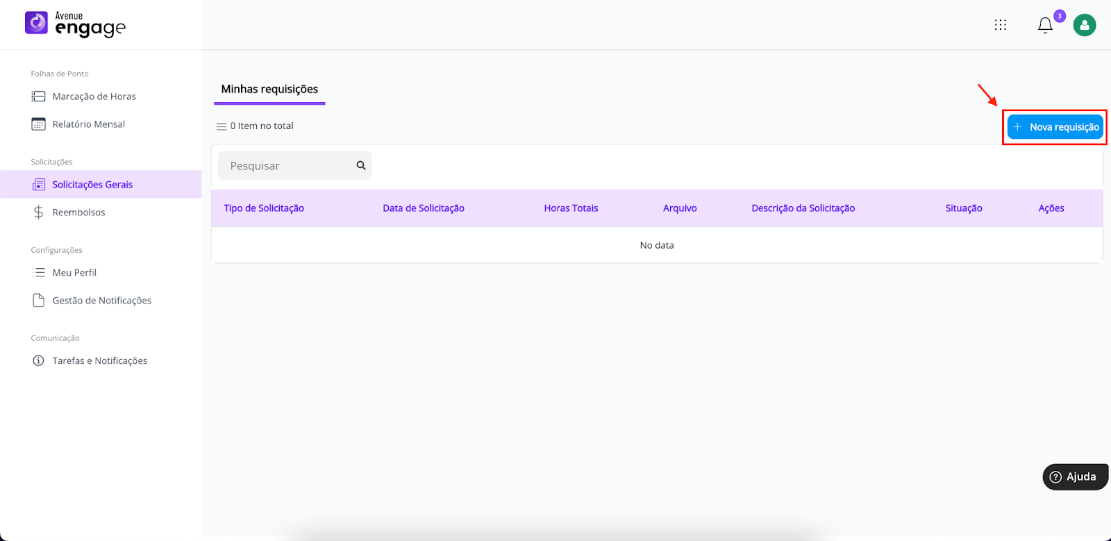 Na aba “Solicitações gerais”, clique em “Nova requisição”;