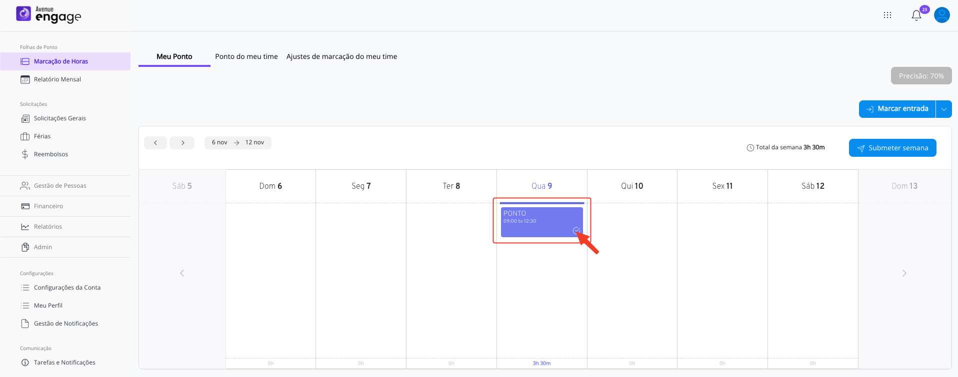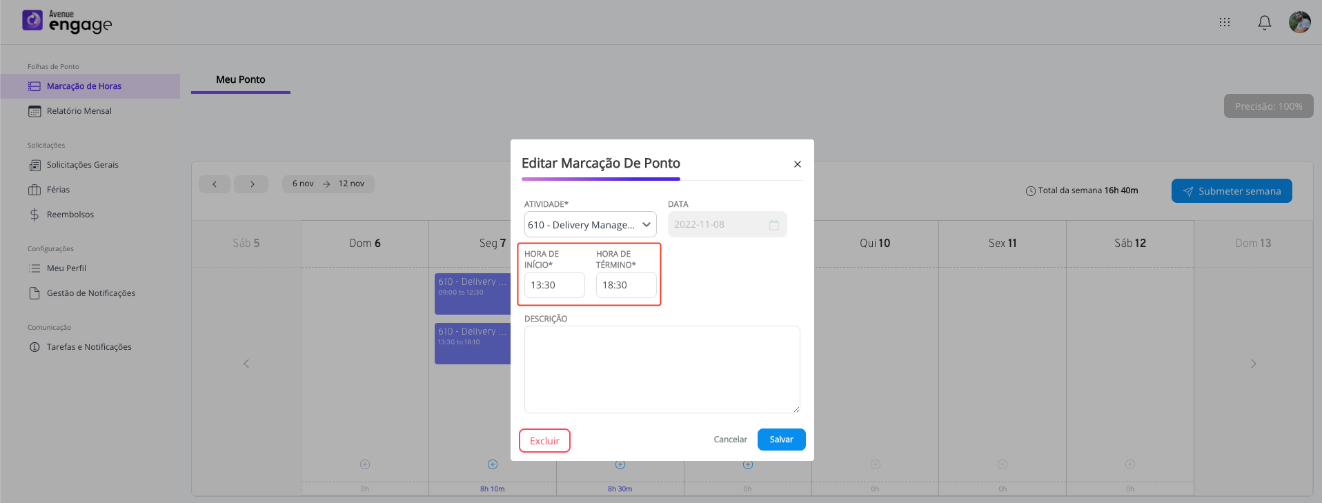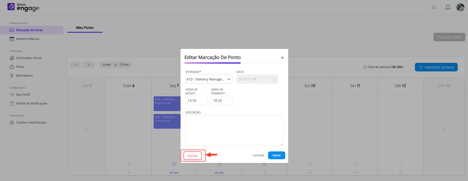Olá! Confira o passo a passo para editar ou excluir uma batida de ponto no Avenue Engage.