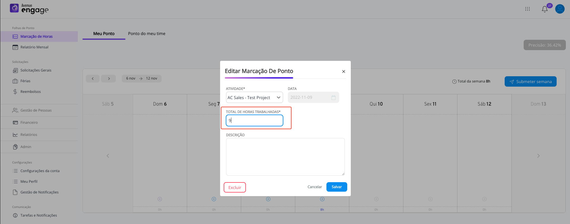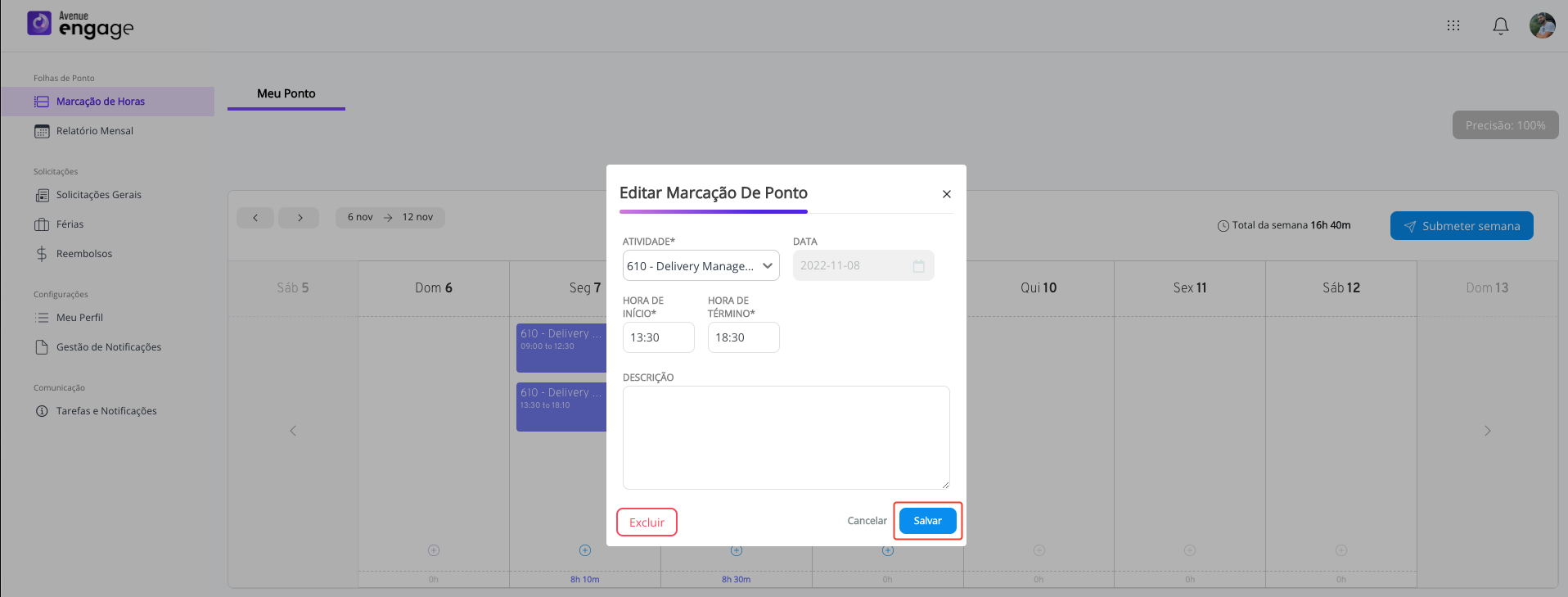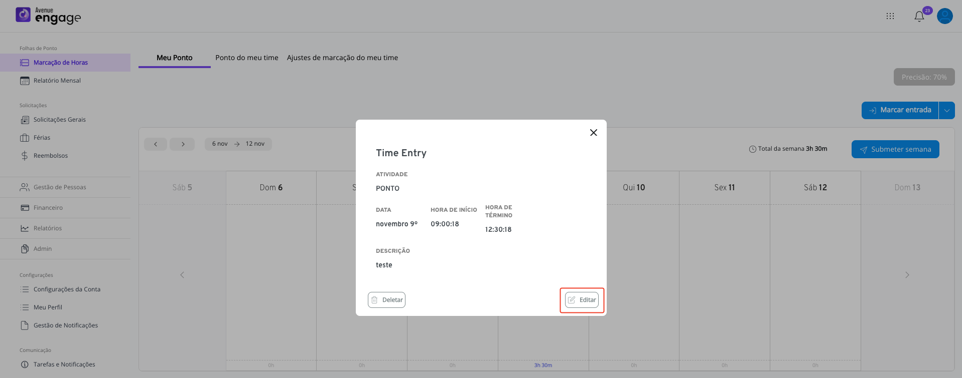 Olá! Confira o passo a passo para editar ou excluir uma batida de ponto no Avenue Engage.