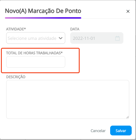 2- Total de Horas: Utilize este artigo somente se as marcações do seu Engage forem do tipo "Total de Horas". Veja abaixo como deve estar em seu Engage ao lançar um novo registro de ponto na seção "Marcação de Ponto":