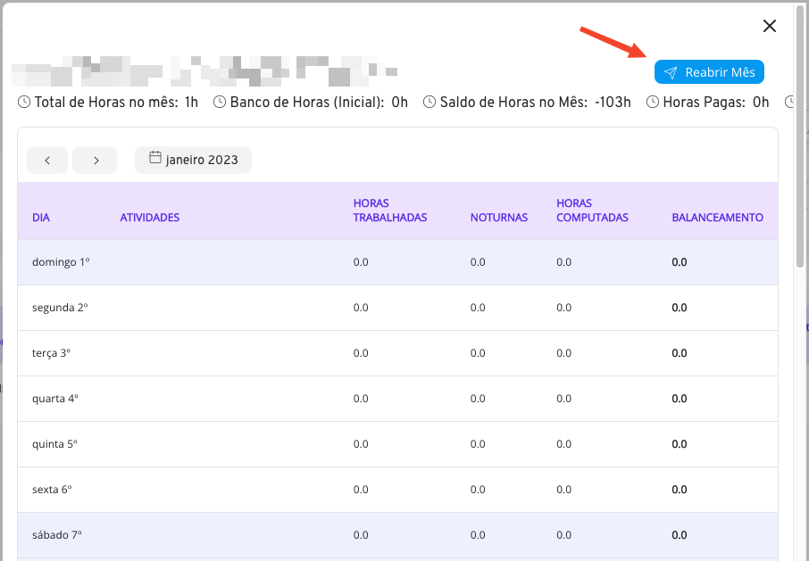 Passo 2: Pesquisar pelo Mês a ser reaberto e Nome do Colaborador.